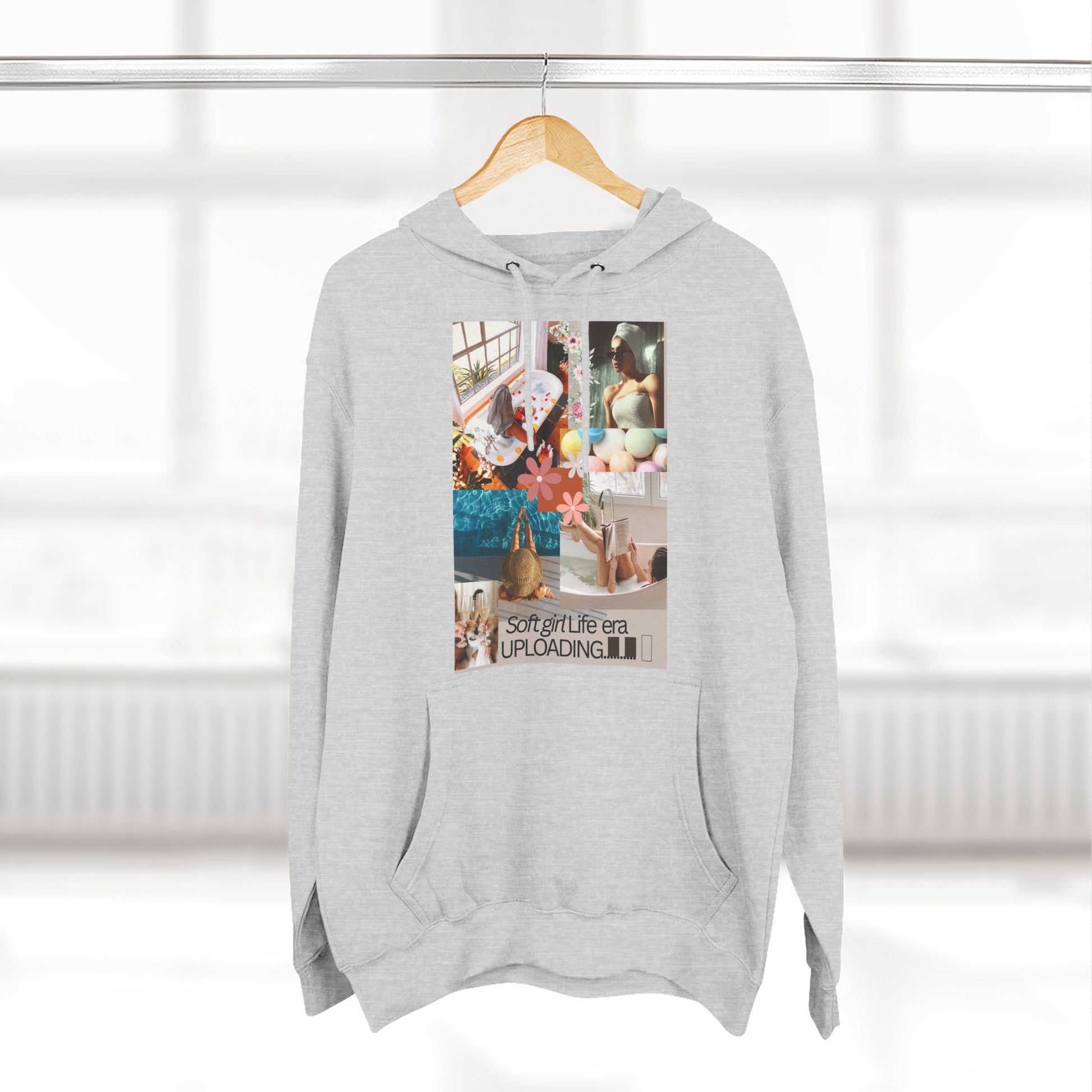 Collage Graphic Hoodie — "Soft Girl Era Uploading" Cozy Fleece Pullover