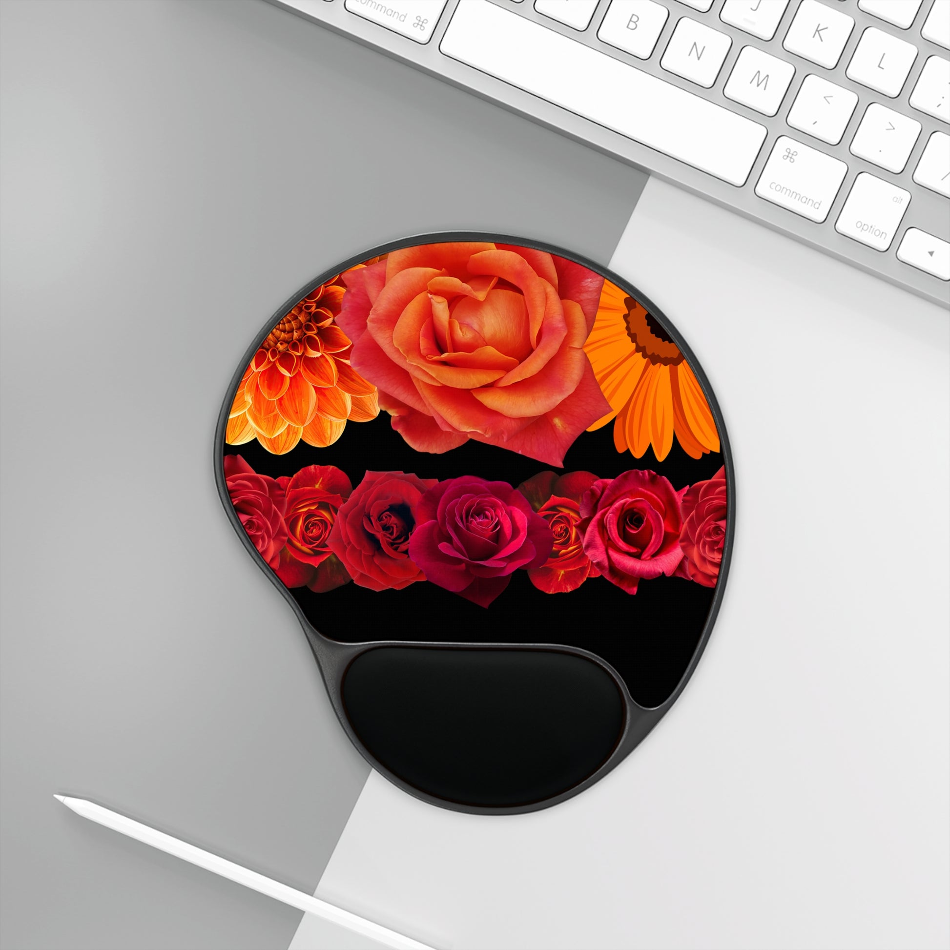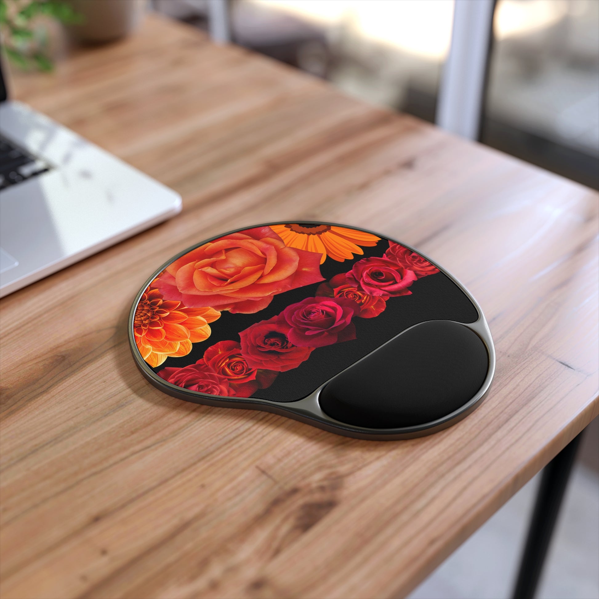 Floral Rose & Marigold Ergonomic Mouse Pad with Wrist Rest