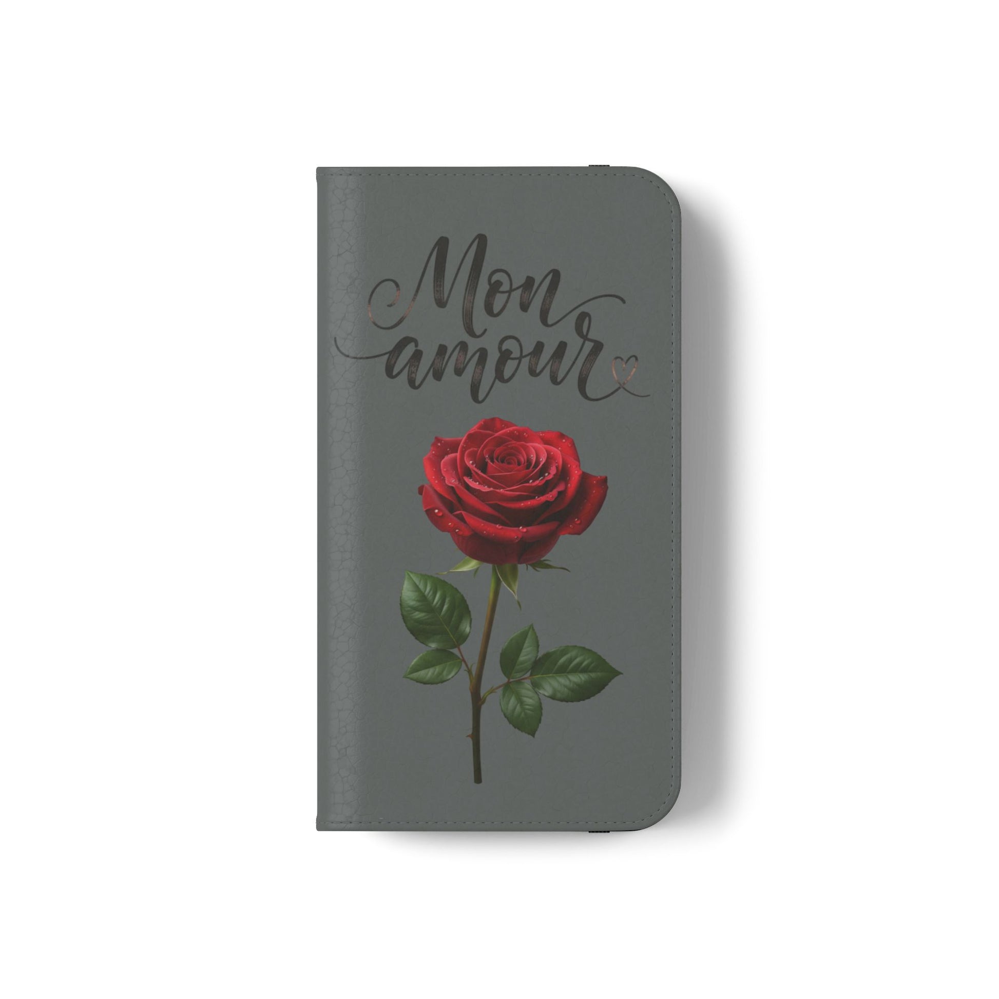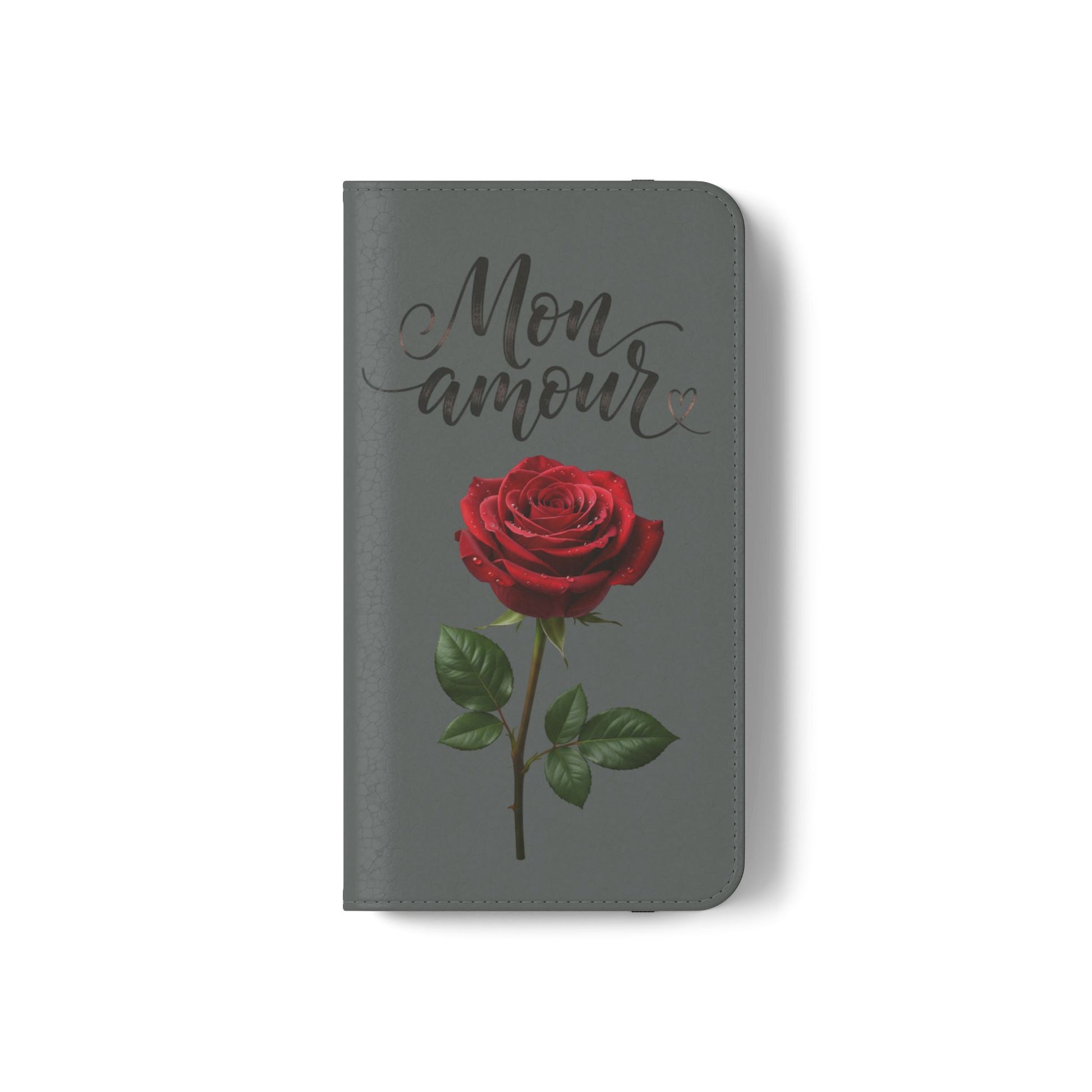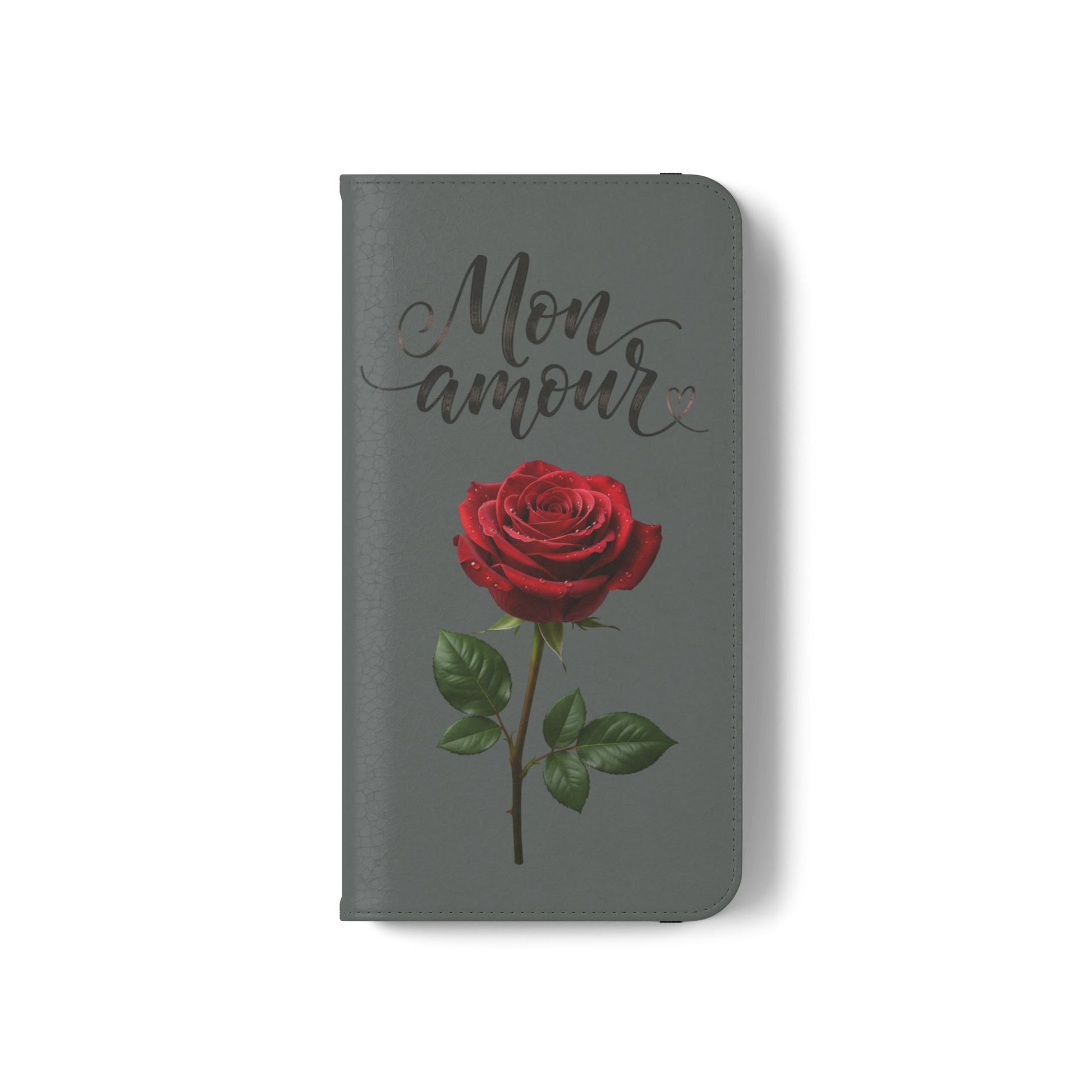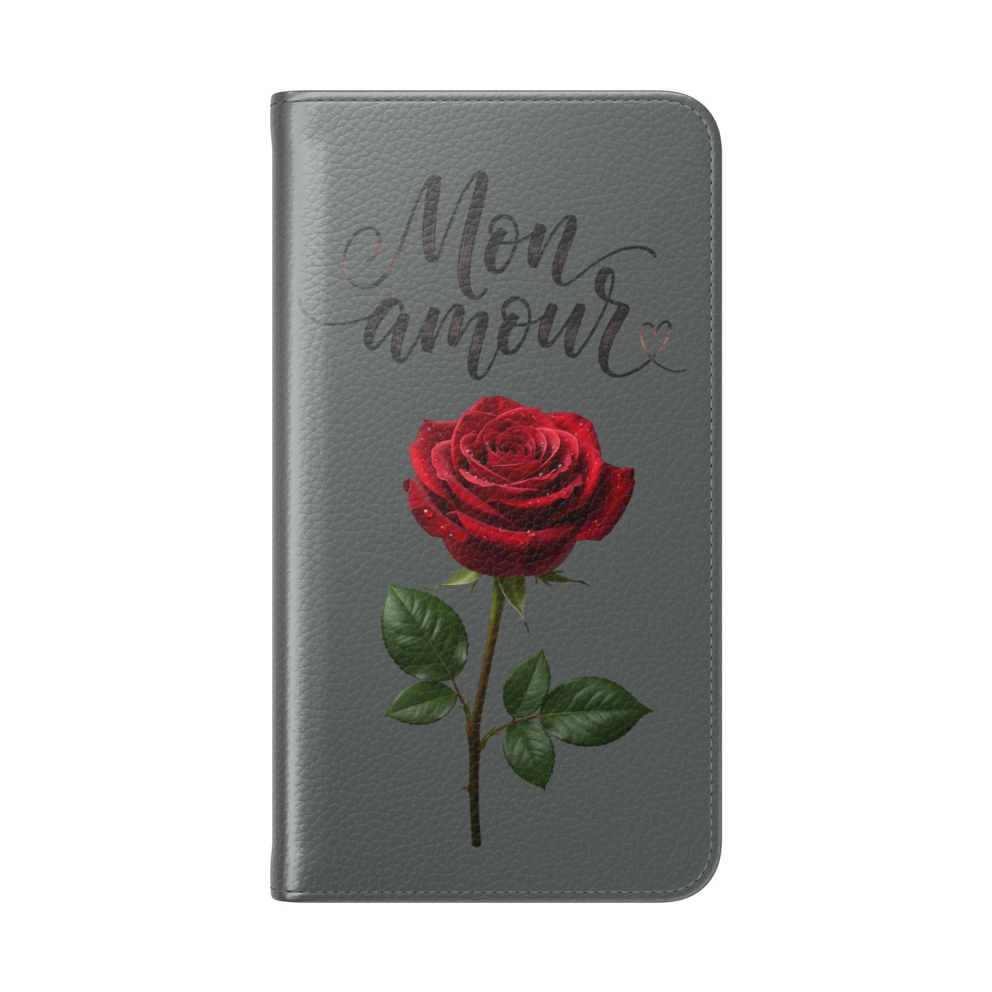 Mon Amour Rose Flip Phone Case — Floral Wallet Flip Case with 'Mon amour' Script