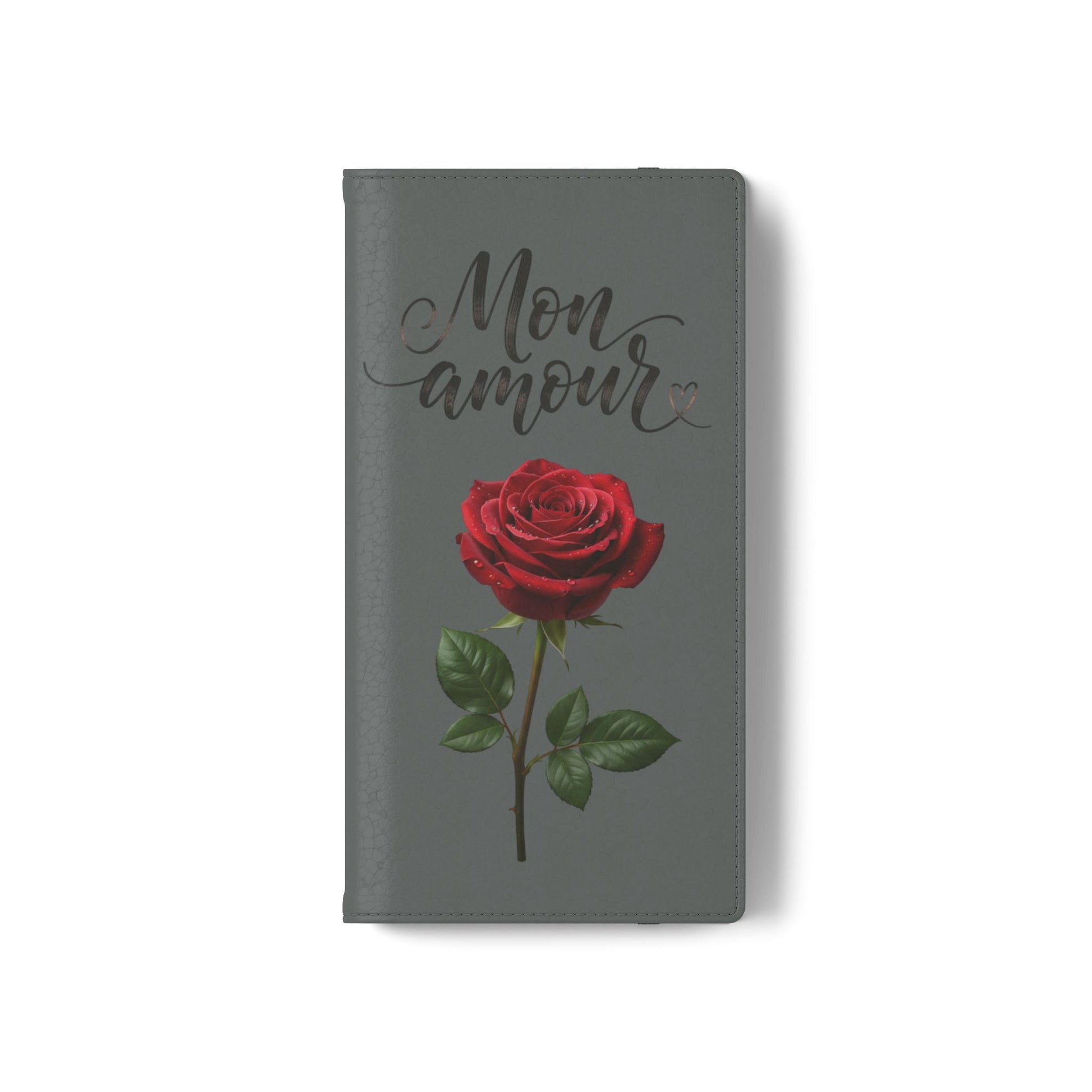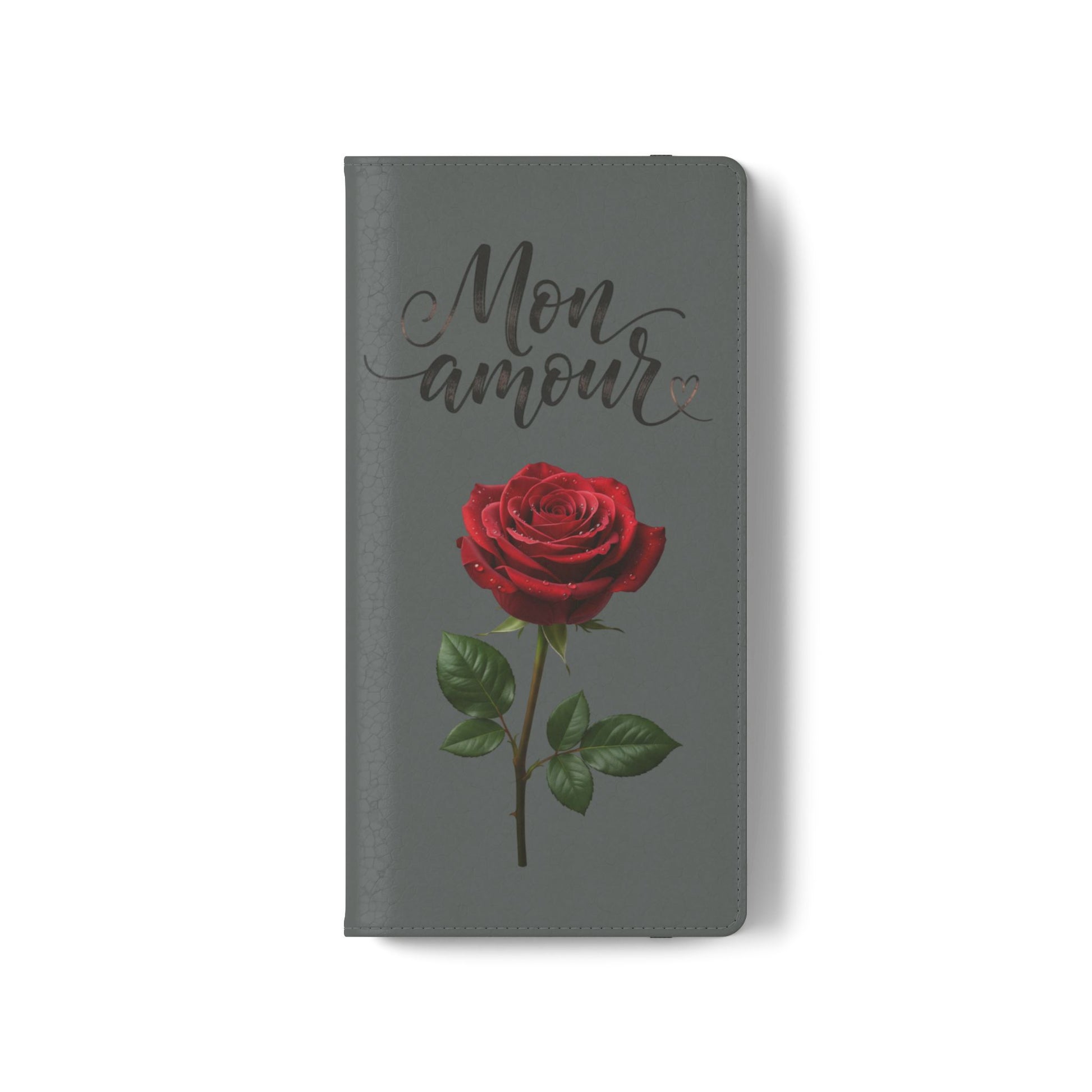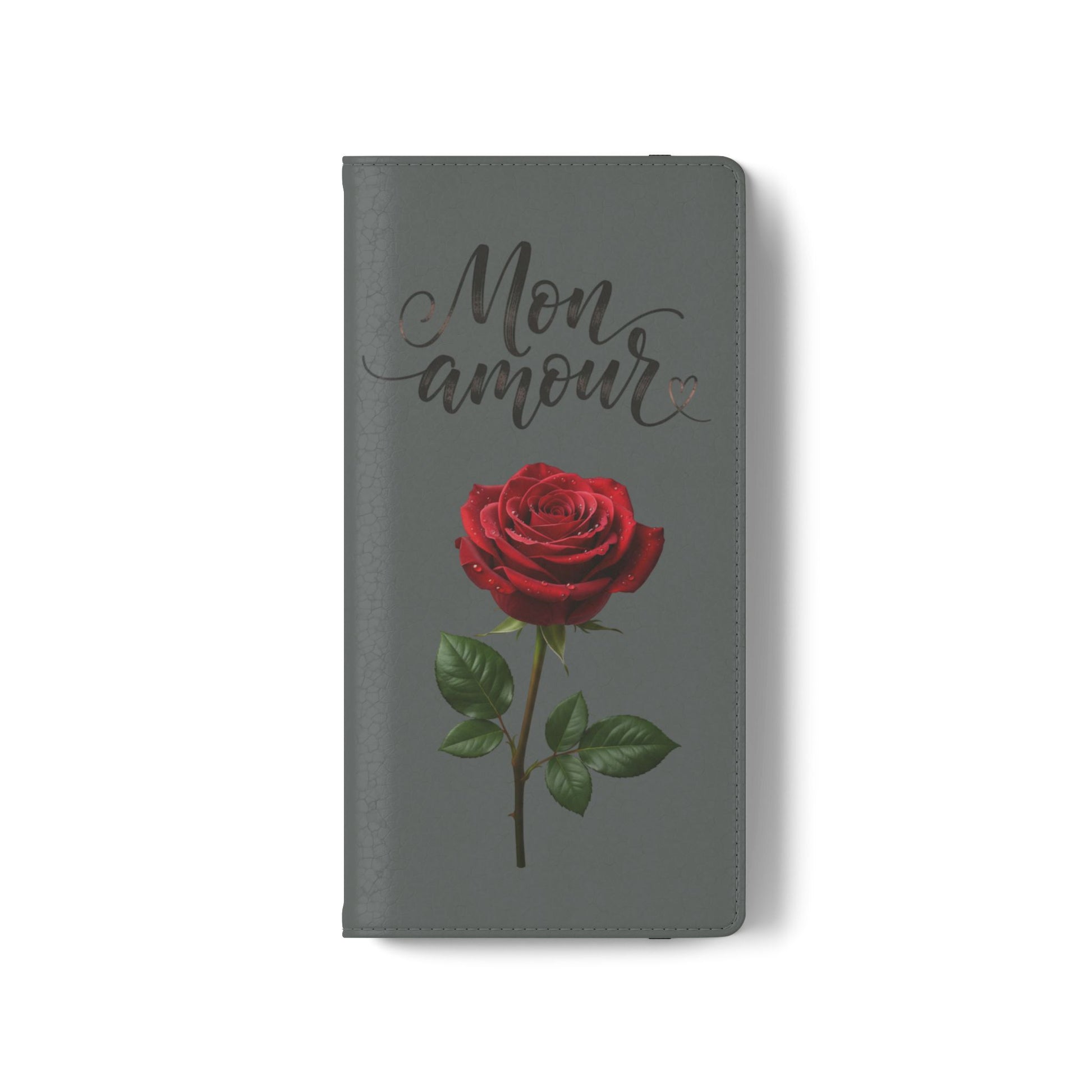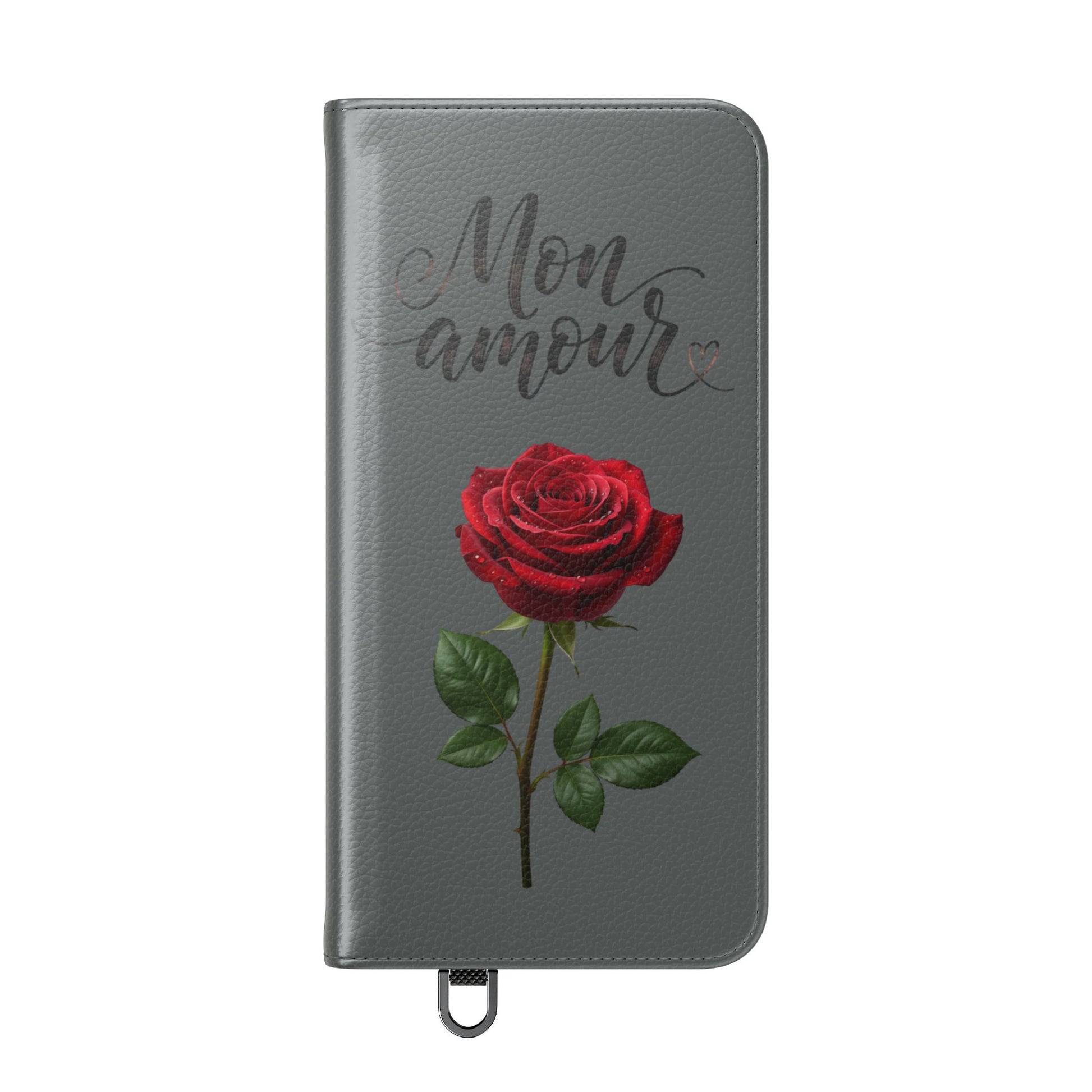 Mon Amour Rose Flip Phone Case — Floral Wallet Flip Case with 'Mon amour' Script