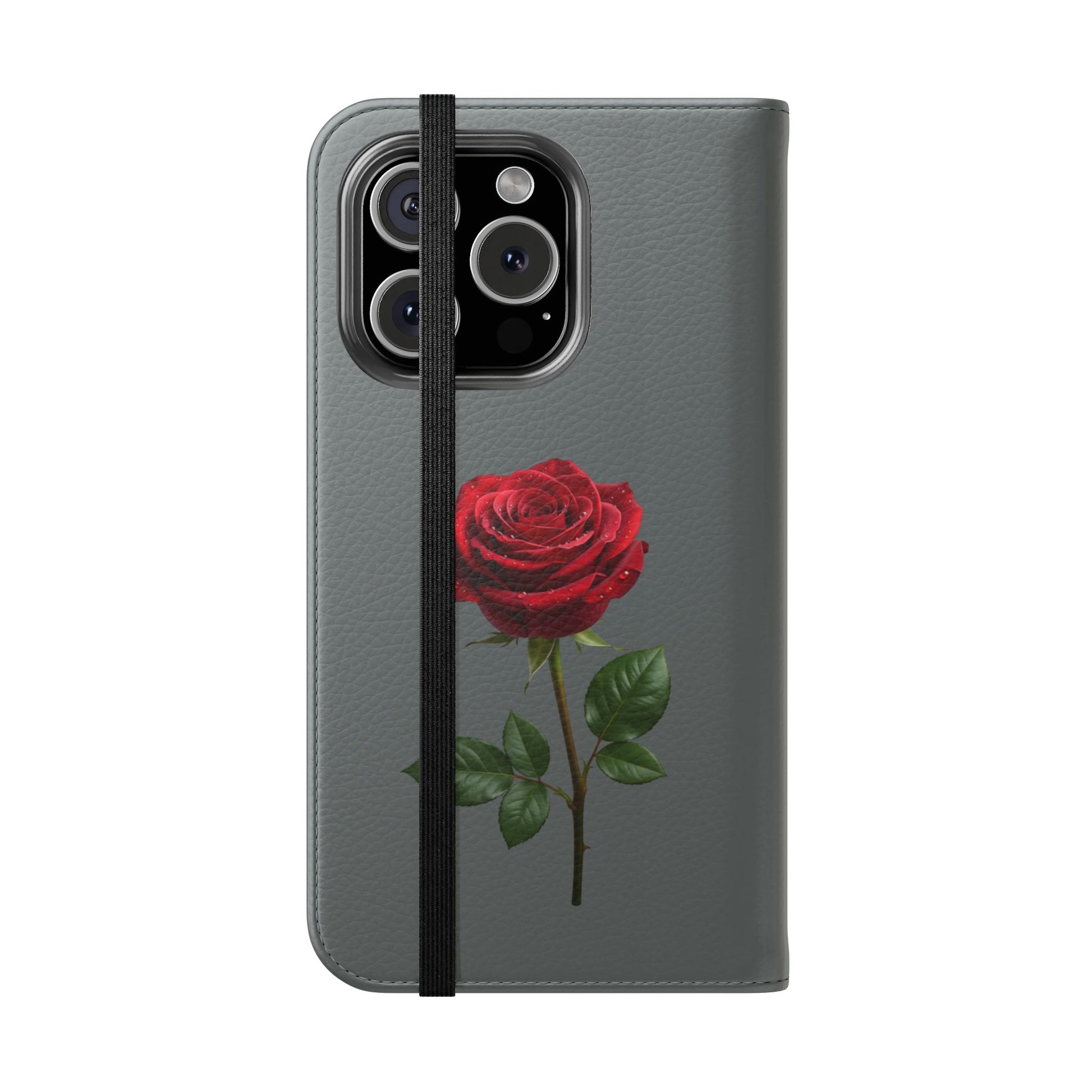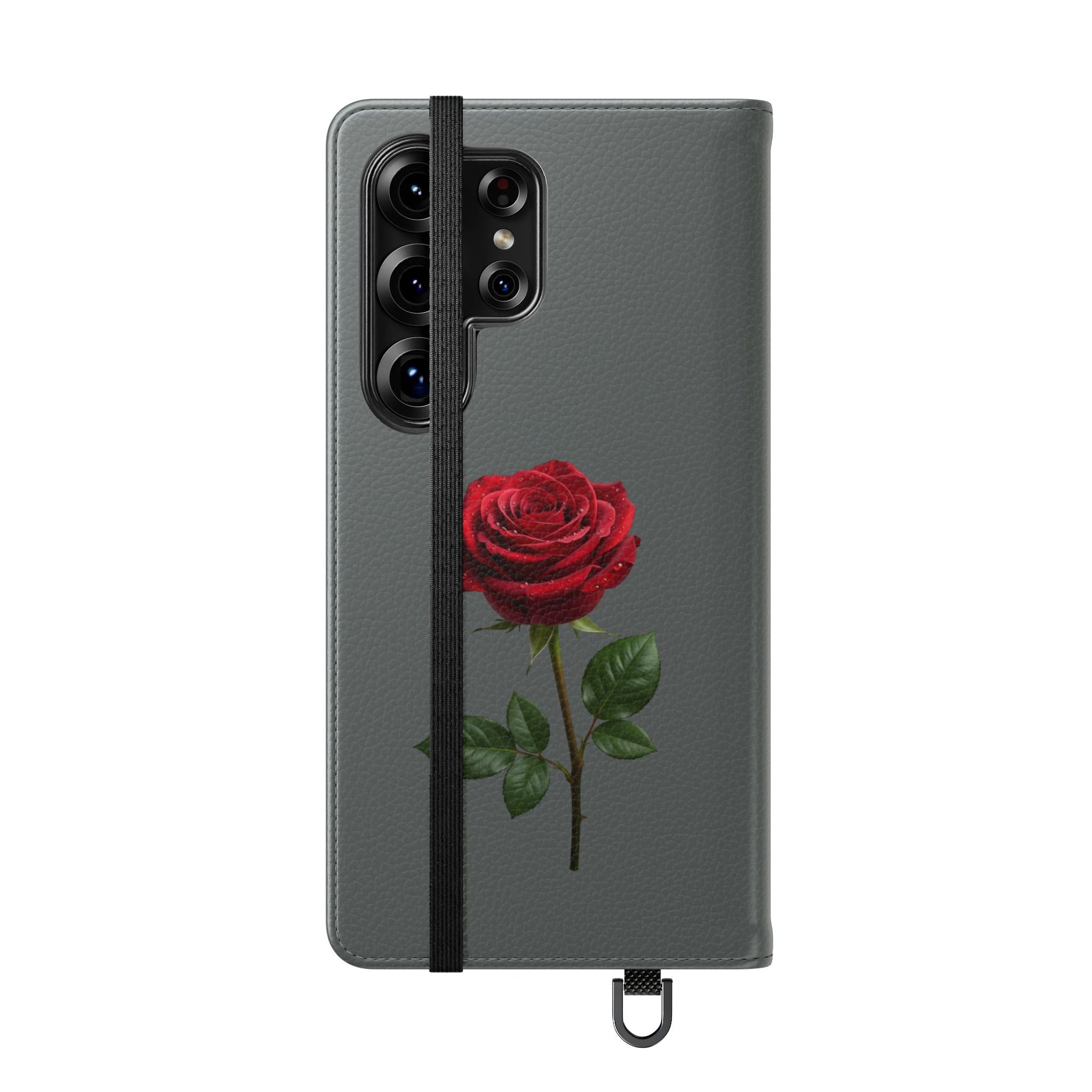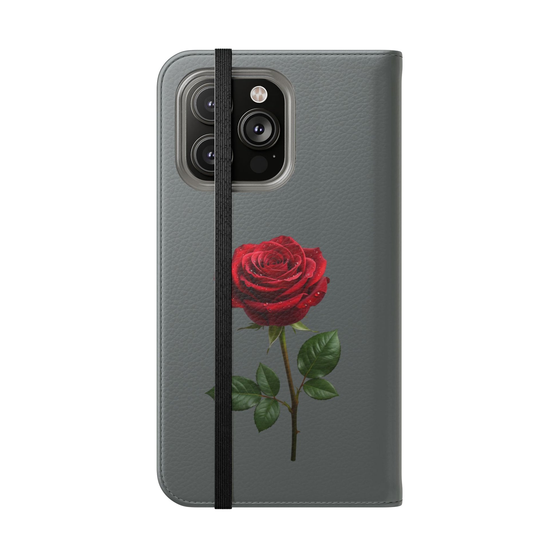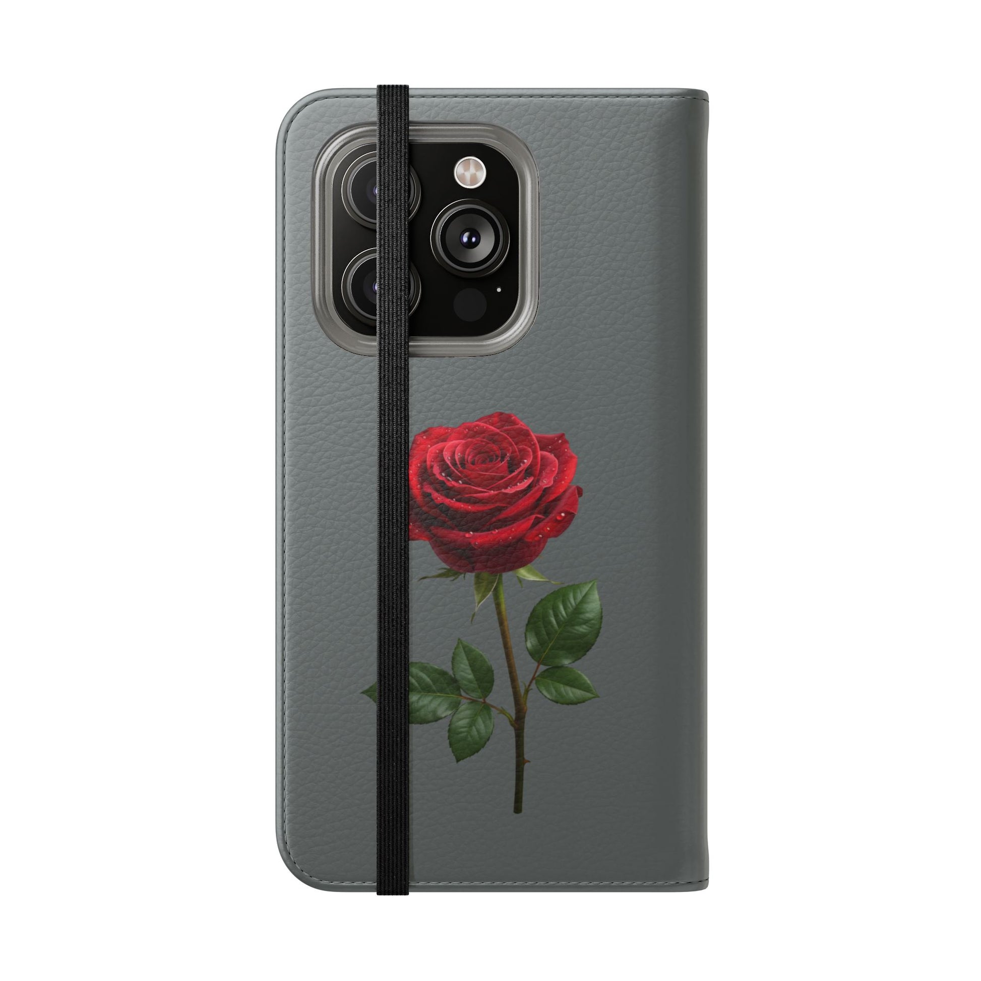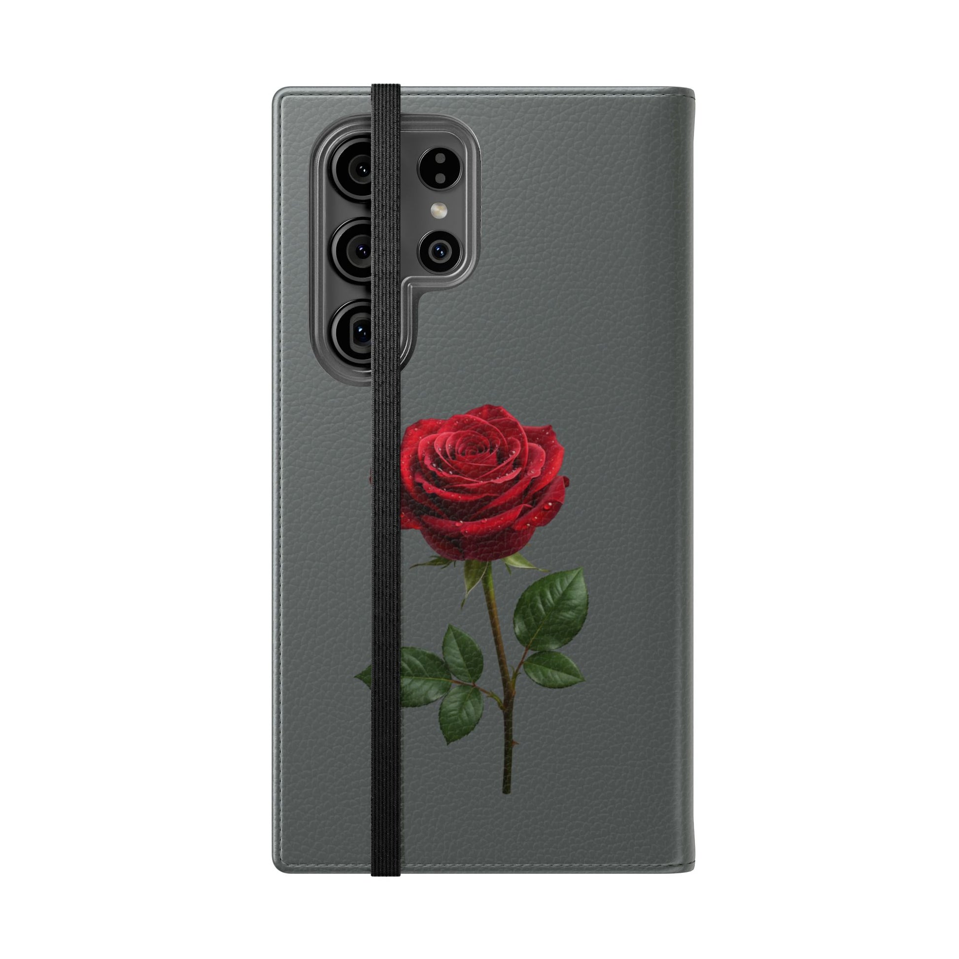 A soft faux-leather flip phone case that brings a touch of romance to your daily routine. The muted gray cover is printed with two richly detailed red roses and the handwritten phrase “Mon amour,” creating a quiet, elegant look that pairs well with both casual and dressy styles. Inside, a durable polycarbonate shell snaps your phone securely into place while stitched card pockets keep a transit card and a few essentials within reach. A built-in stand folds to prop the phone for watching videos, and clear port openings keep charging and audio simple. Thoughtfully made in South Korea with cruelty-free materials and a flat elastic fastening, this case balances protection, convenience, and a little sentimental charm for everyday use and travel.