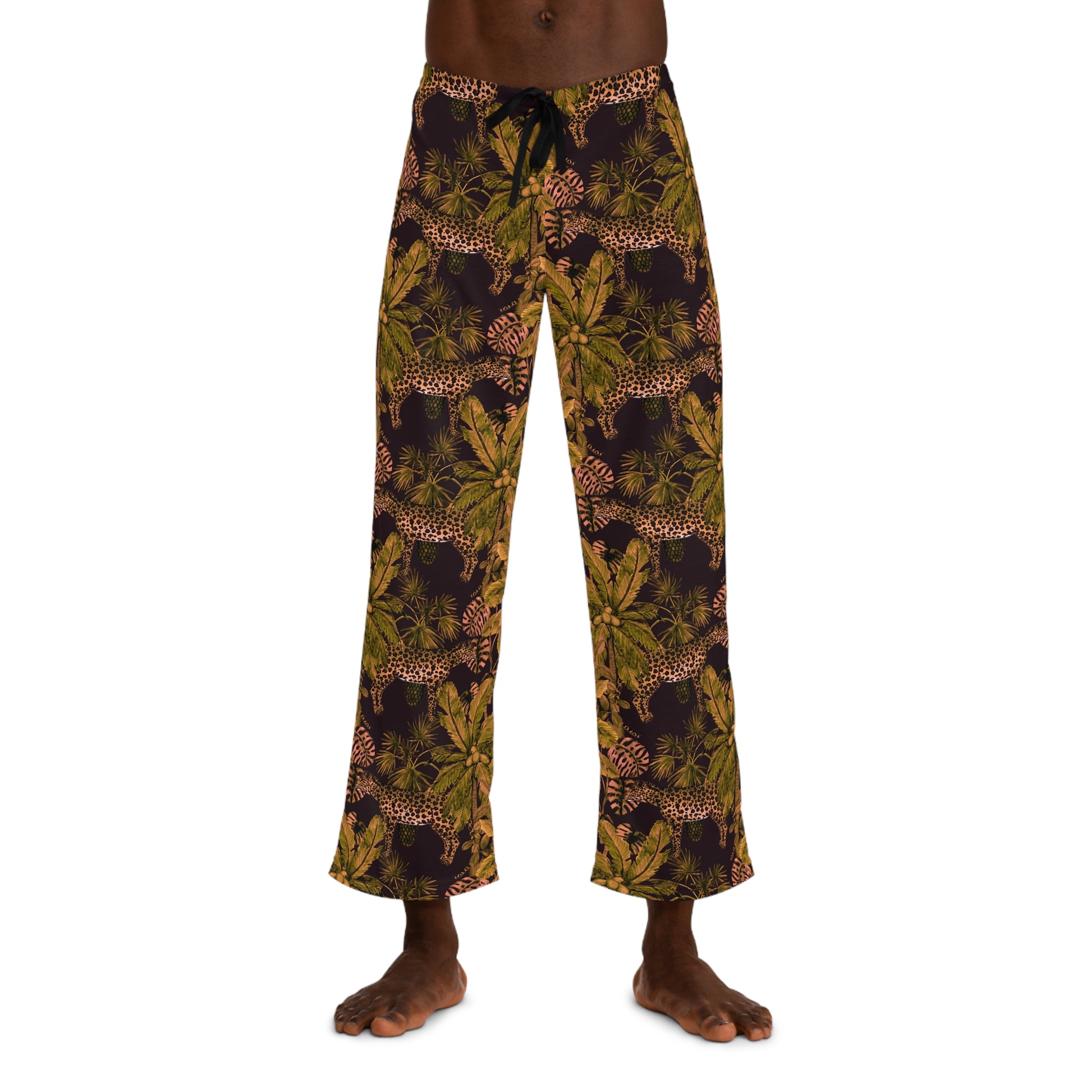 Tropical Leopard Pajama Pants — Men's Jungle Print Lounge Trousers